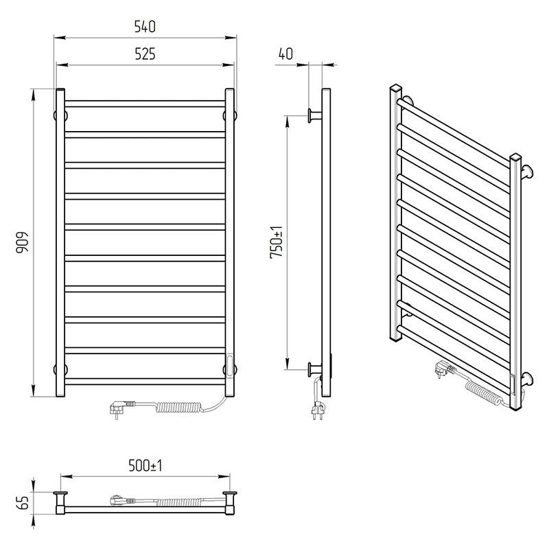 Рушникосушка АЛЬФА ЧФЧ10 500*900, права, чорний мат | 73207630