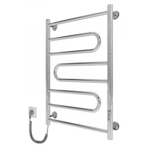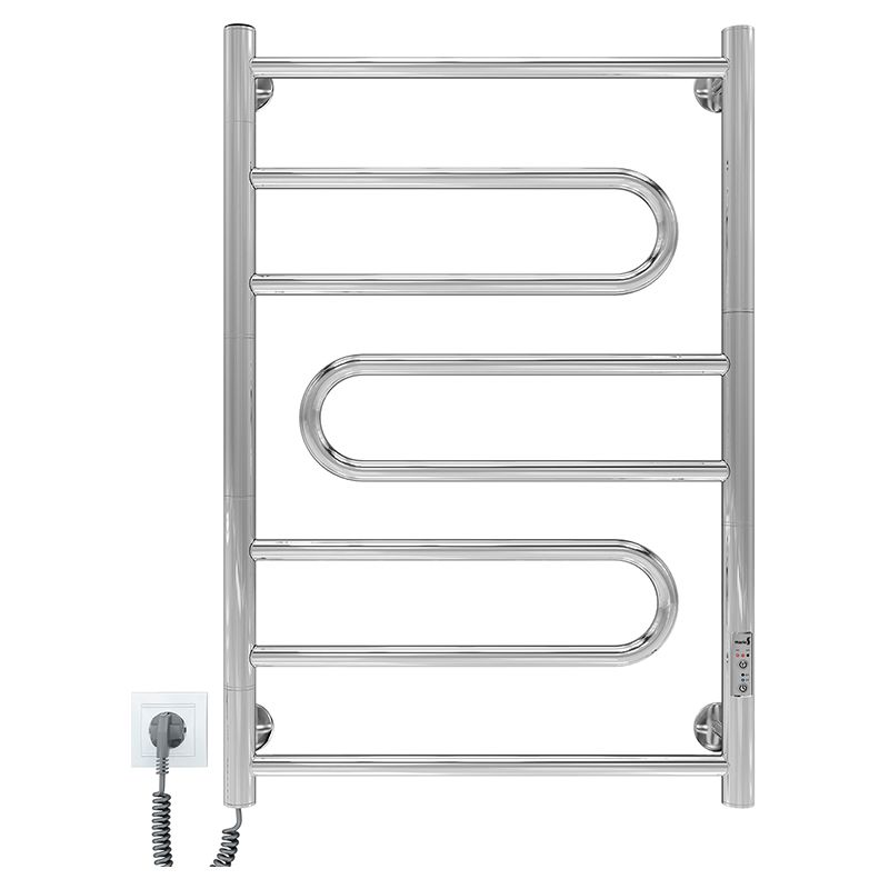 Електросушарка для рушників побутова Атлас 700х500/55 TR. Обладнана таймер-регулятором та конектором для підключення в розетку з будь-якого боку. Сумісна з комплектом прихованого підключення. Має 5 ребер та стояки з круглої труби. Виготовлена з полірованої нержавіючої сталі без хромування.