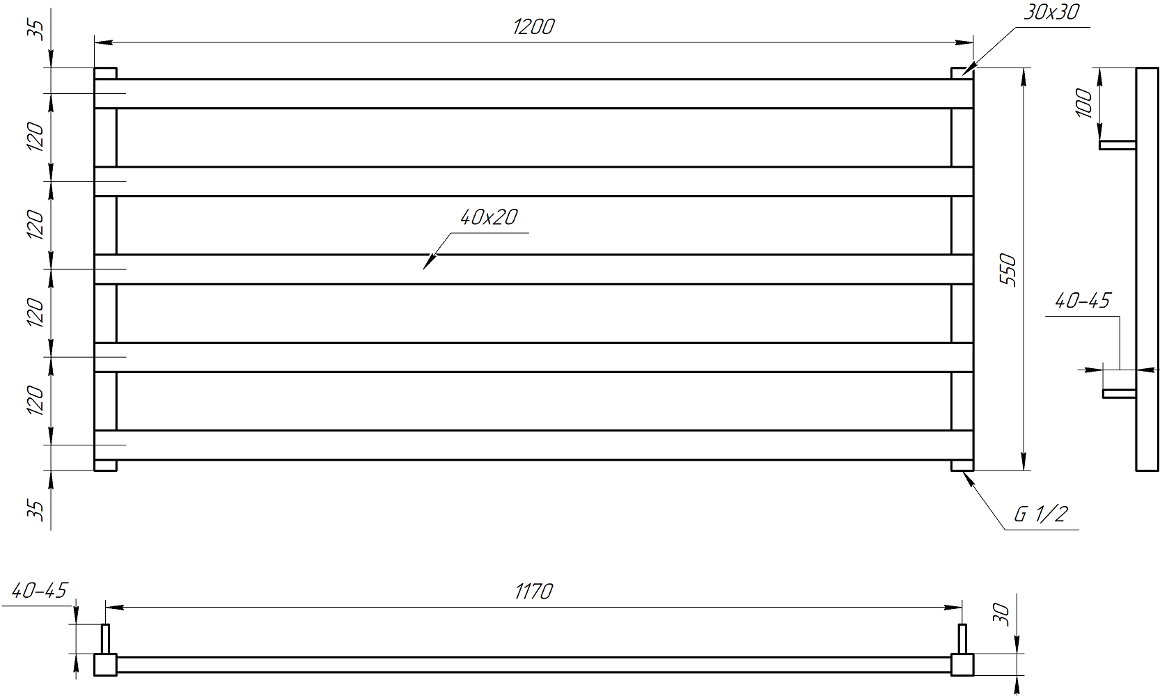 Рушникосушка GENESIS AQUA Giza 55x120 водяна | 2501