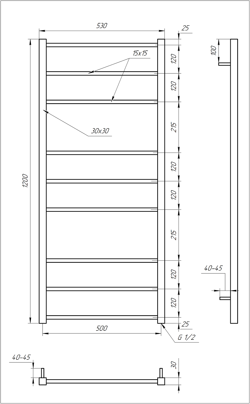 Рушникосушка GENESIS AQUA Tristar square 120x53 водяна | 2003