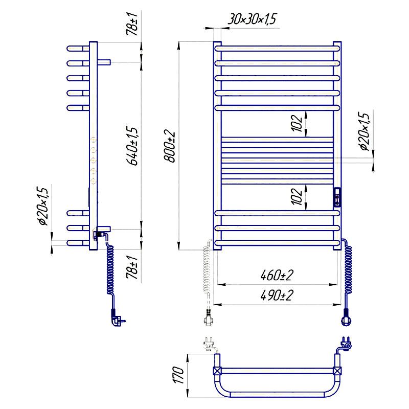 Електросушарка для рушників побутова Гера-Люкс-I 800х500/170 TR К. Обладнана таймер-регулятором та конектором для підключення в розетку з будь-якого боку. Сумісна з комплектом прихованого підключення. Має 13 ребер та стояки з профільної труби. Виготовлена з полірованої нержавіючої сталі без хромування.
