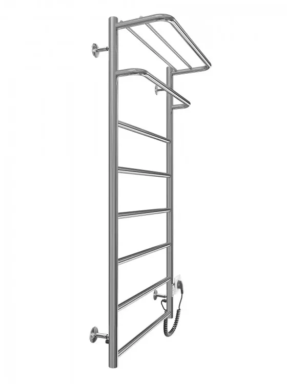 Електросушарка для рушників побутова Hotel-І 1090х530/240 TR К. Обладнана таймер-регулятором та конектором для підключення в розетку з будь-якого боку. Сумісна з комплектом прихованого підключення. Має 8 ребер та стояки з круглої труби. Виготовлена з полірованої нержавіючої сталі без хромування.