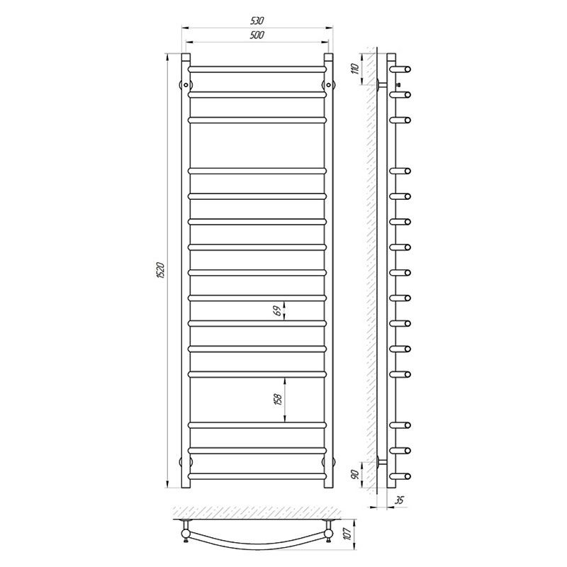 Рушникосушка КЛАСІК П15, 500*1500 хром | 71207383