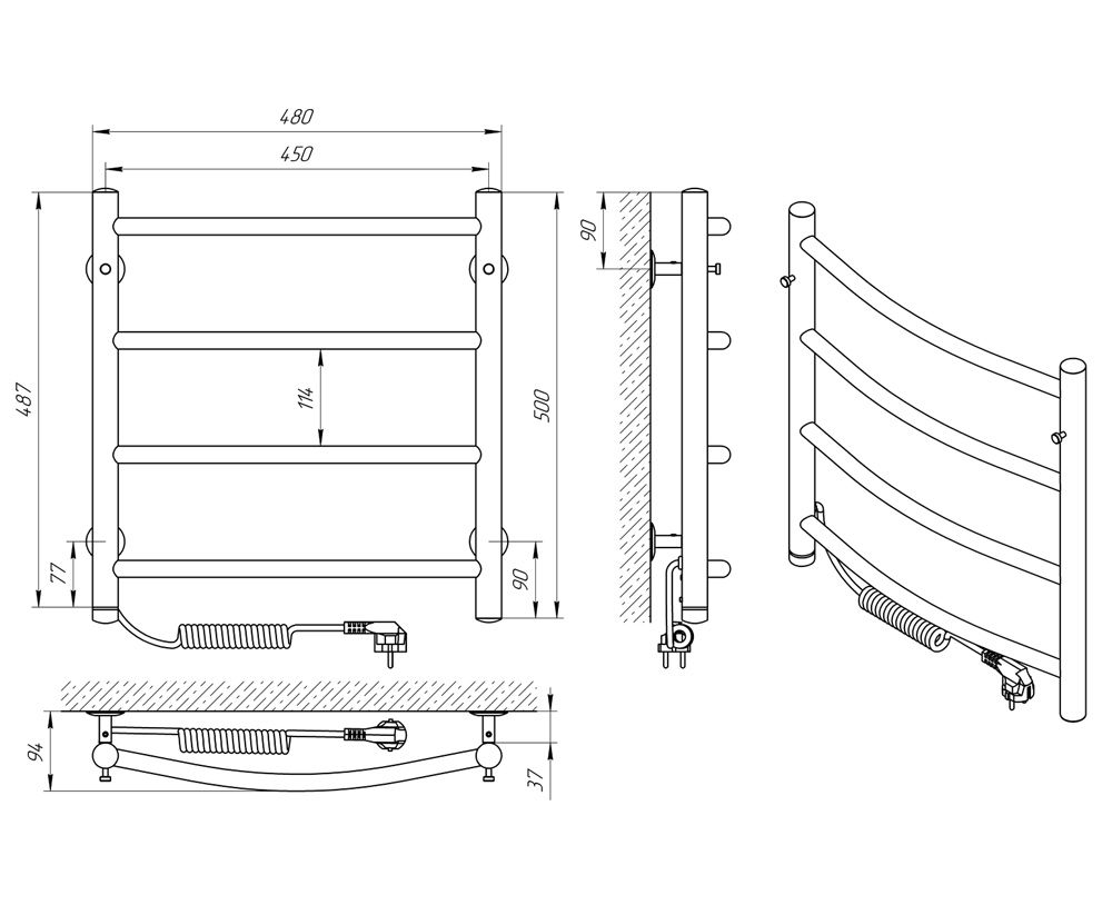 Рушникосушка КЛАСІК П4 450*500, ліва S3 | 73207719