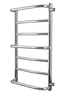Рушникосушарка "Маріо" Фокстрот 530х500/500. Розміри: висота - 530 мм, ширина - 500 мм, глибина 110 мм, міжцентрова відстань для підключення - 500 мм, діаметр підключення G1/2''. Варіанти підключення: бічне. Кількість ребер - 6, стояки з круглої труби. Виготовлена з полірованої нержавіючої сталі без хромування.