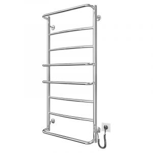 Електросушарка для рушників побутова Люкс НР-І 1090х530/150 TR К. Обладнана таймер-регулятором та конектором для підключення в розетку з будь-якого боку. Сумісна з комплектом прихованого підключення. Має 8 ребер та стояки з круглої труби. Виготовлена з полірованої нержавіючої сталі без хромування.