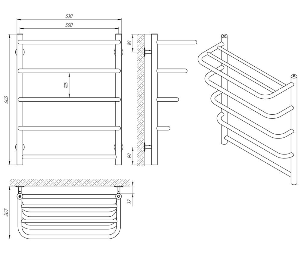 Рушникосушка СТАНДАРТ П5, 500*660 з полицею | 71207570