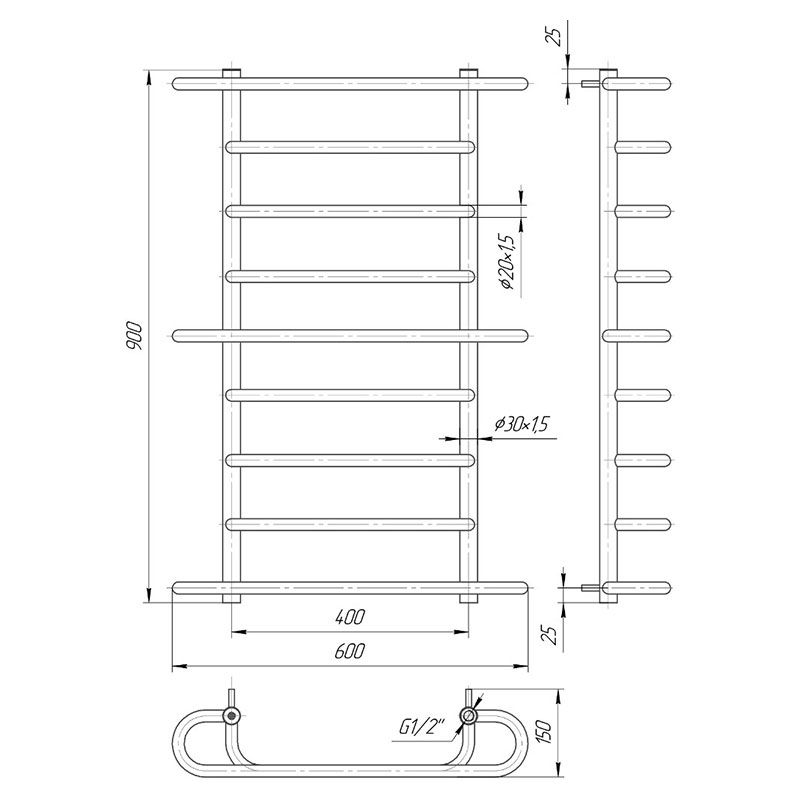 Рушникосушка ВЕРОНА 900х600/400 | 1.1.0501.01.P