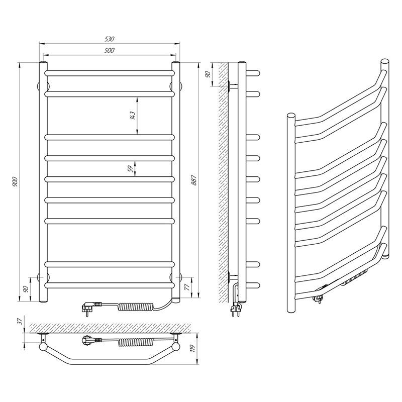 Рушникосушка ВІКТОРІЯ П9 500*900, права | 73207018