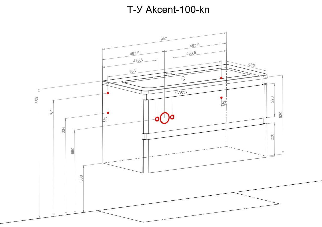 Шафка з умивальником підвісна Акцент Альфа 100, Аква Родос | АР000040137