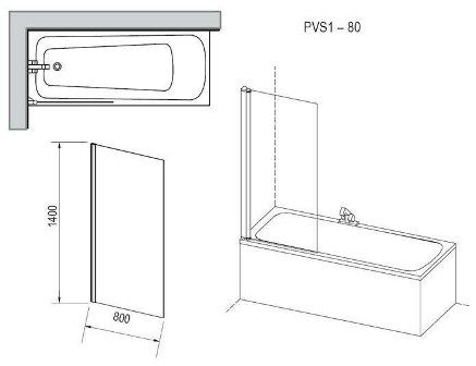 Шторка для ванни нерухома одноелементна PVS1-80 Transparent (79840U00Z1), RAVAK | 79840U00Z1