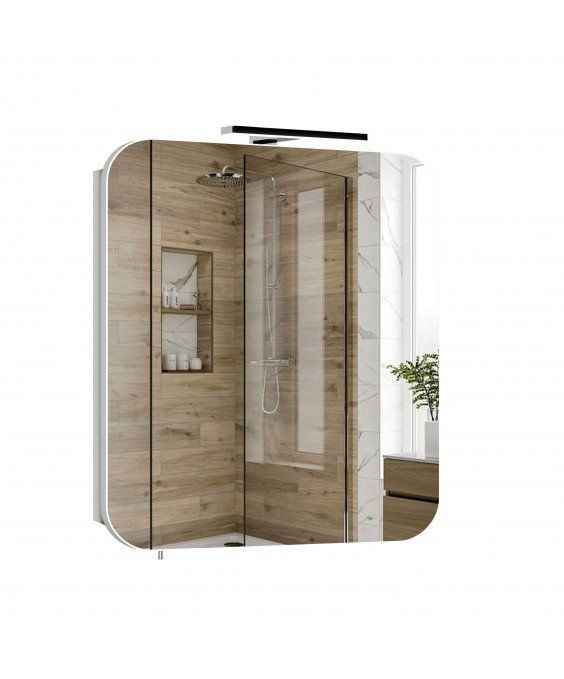 Дзеркальна шафа Сорренто ЗШ-60 зі світильником Сорренто від MDD Group - це відмінне рішення для тих, хто шукає додаткове місце для зберігання ванних і косметичних приладдя у ванній кімнаті. Зручна ручка для відкривання допоможе зберігати вашу ванну кімнату в чистоті. Так само, Сорренто ЗШ-60 можна встановлювати з відкриванням вправо або вліво (на вибір при монтуванні).