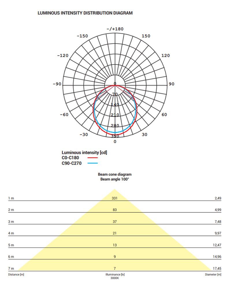 Кут світла, градусів:100