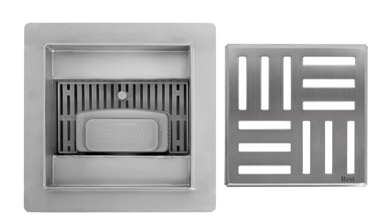 Точковий трап REA CROSS - повністю виготовлений з високоякісної нержавіючої сталі Aisi 304. Ніжки дозволяють регулювати висоту трапу відповідно до потреб та можливостей встановлення. Мінімальний діапазон регулювання становить 64 мм, максимальний – 84 мм. Знімний грязьовий фільтр та легкий доступ до сифону полегшують очищення зливу.