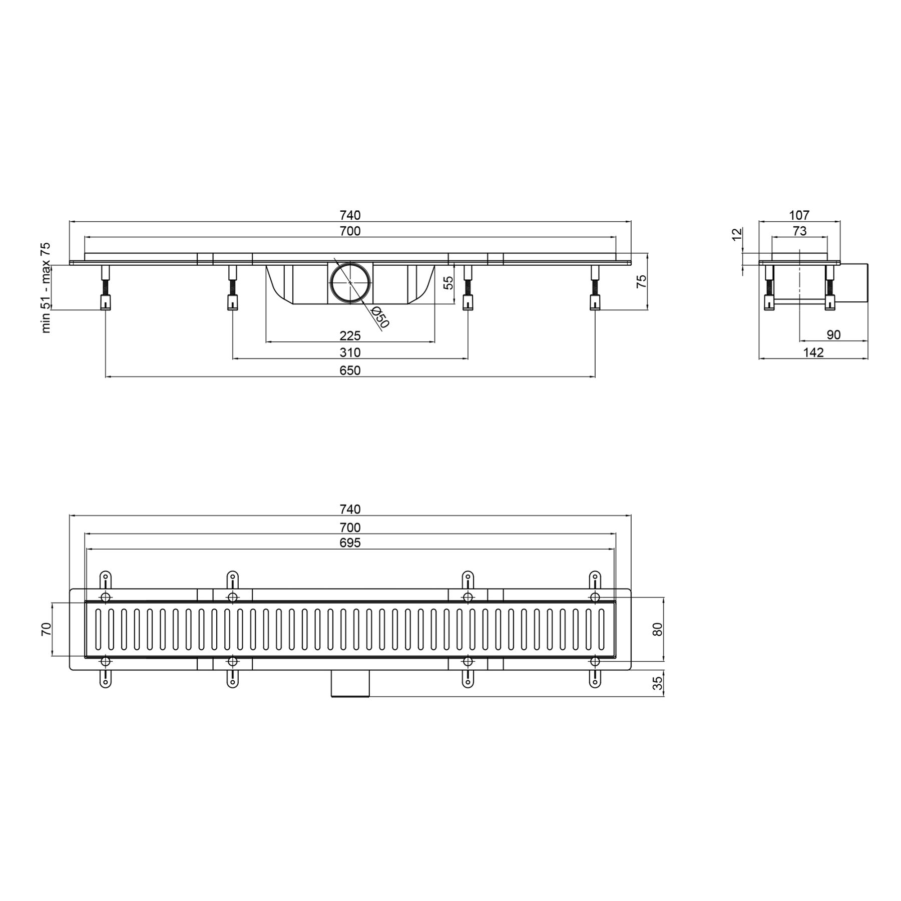 Трап Qtap Dry FA304-700 лінійний з сухим затвором | SD00038747