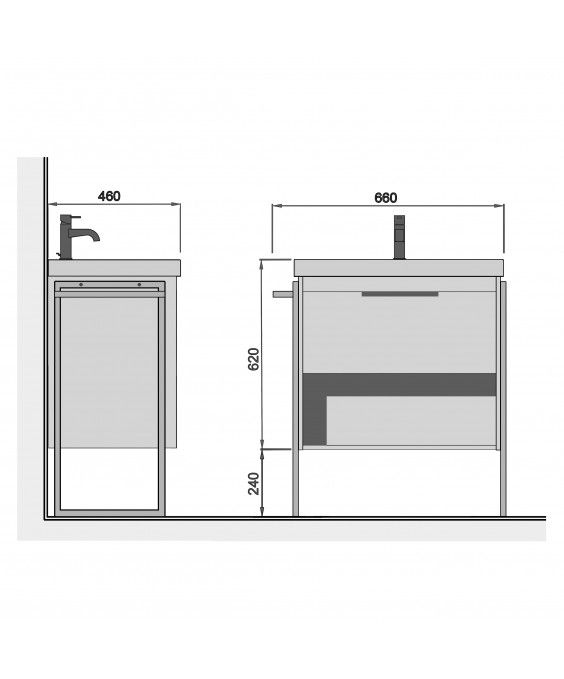 Denver 60-А - це умивальник і підвісна тумба з висувним ящиком з системою плавного закривання (Hettich) і відкритою нішею. Набір комплектується умивальником Vivace 60.