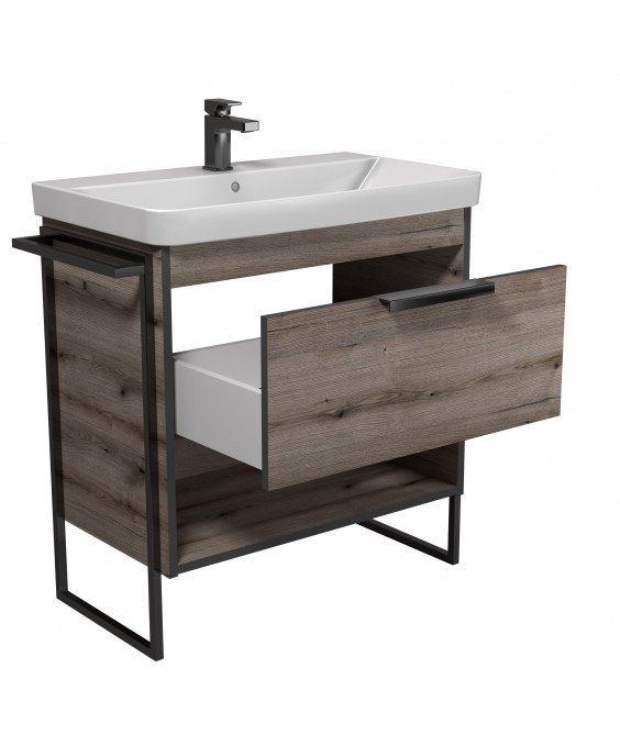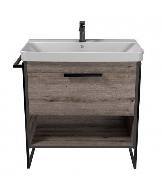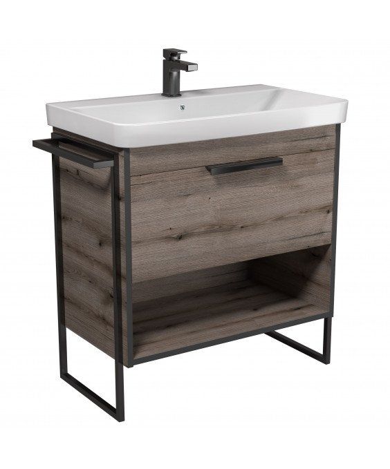 Тумба Denver 80-A з умивальником Vivace 80 Дуб Евок з опорами та рушникотримачем | 00-0008453