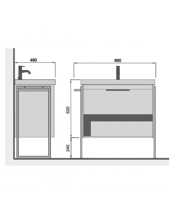 Denver 80-А - це умивальник і підвісна тумба з висувним ящиком з системою плавного закривання (Hettich) і відкритою нішею. Набір комплектується умивальником Vivace 80.