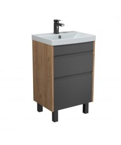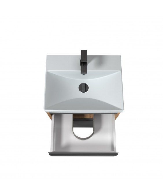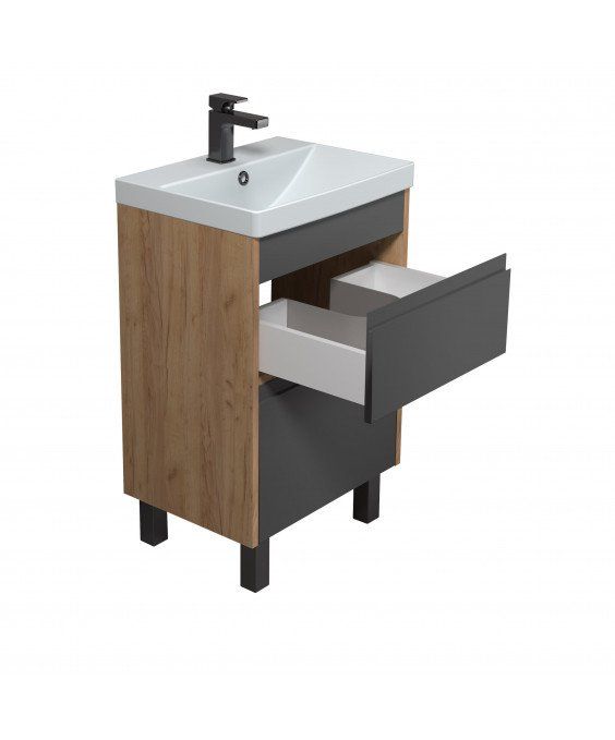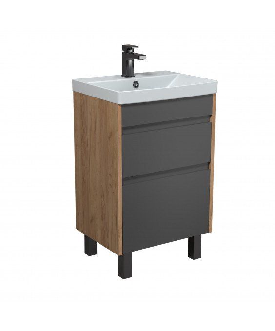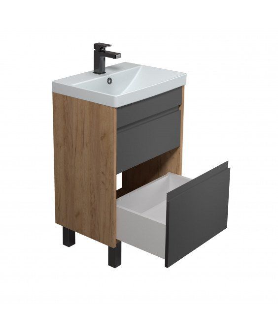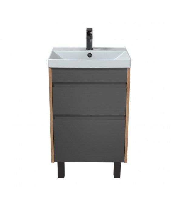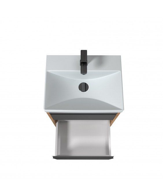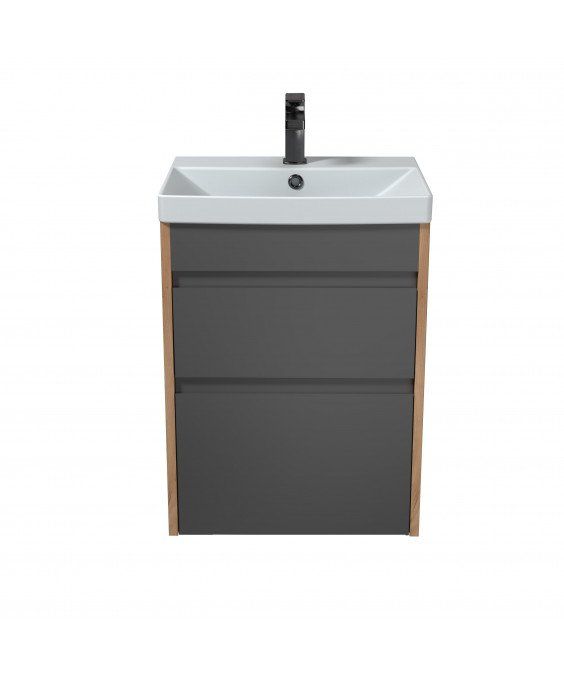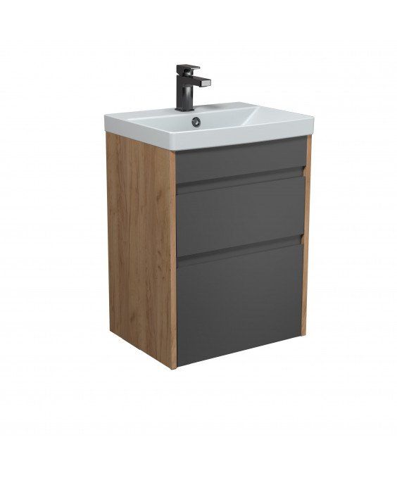 Тумба Jessy 50-U з умивальником Sempre 50 графіт з деревом підвісна підлогова | 00-0008525