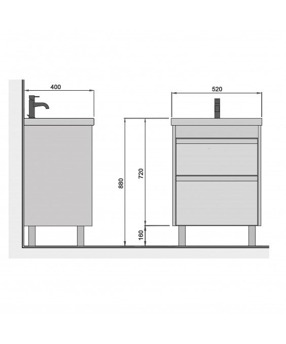 У моделі використовується мініатюрний прямокутний умивальник Sempre 50 (Туреччина)