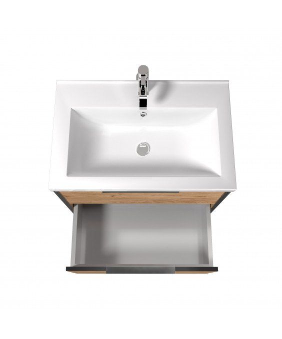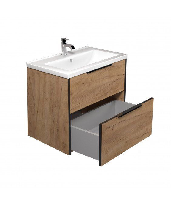 Line Craft 70 тумба кольору дуб крафт з чорним та умивальником Cosmo 70. Спокійні тони та природній дизайн колекції «Line Craft» від MDD Group має створити затишок у вашій ванній кімнаті.