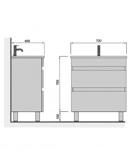 Тумба MoonShine 70 з умивальником Cosmo 70 підлогова | 00-0008514
