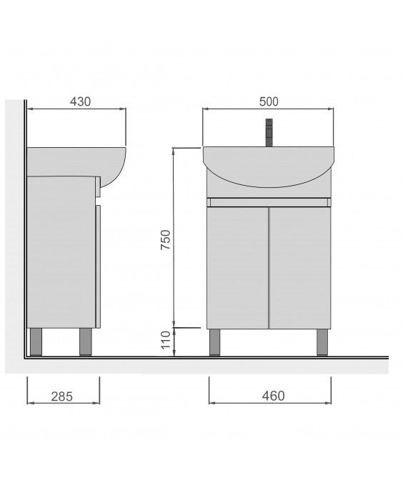 Також в колекції присутні тумби 60 см, 70 см, 80 см і пенала - шириною 33 см без кошика.