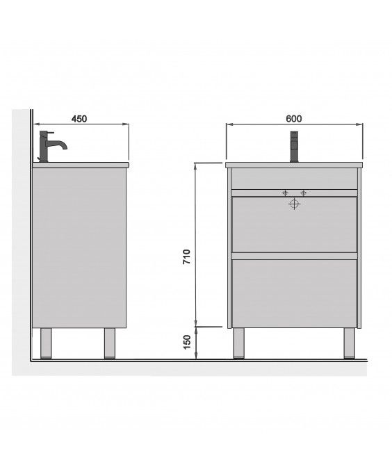 Ця модель оснащена двома ящиками і комплектується раковиною Cosmo шириною 60 см.