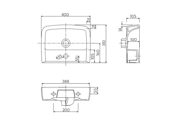 Ширина умивальника:від 31 до 40 см
