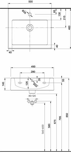 Умивальник Kolo TWINS 50см прямокутний, з отвором та переливом | L51150000