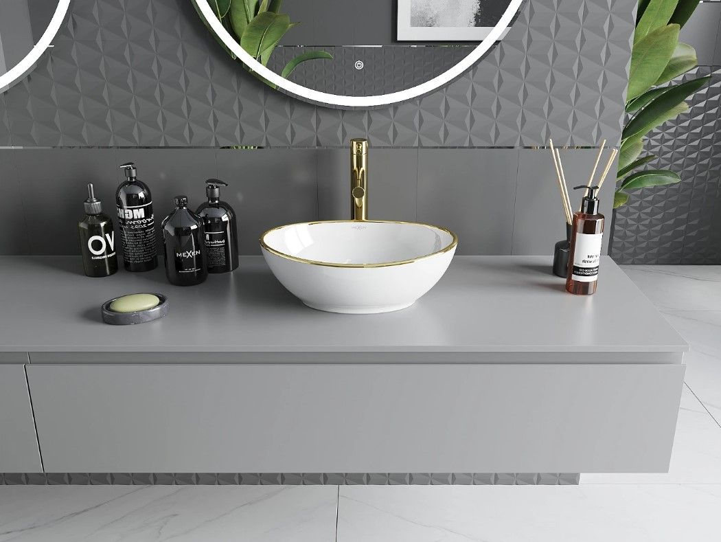 Умивальник MEXEN ELZA WHITE GOLD EDGE накладний | MEX-21014005
