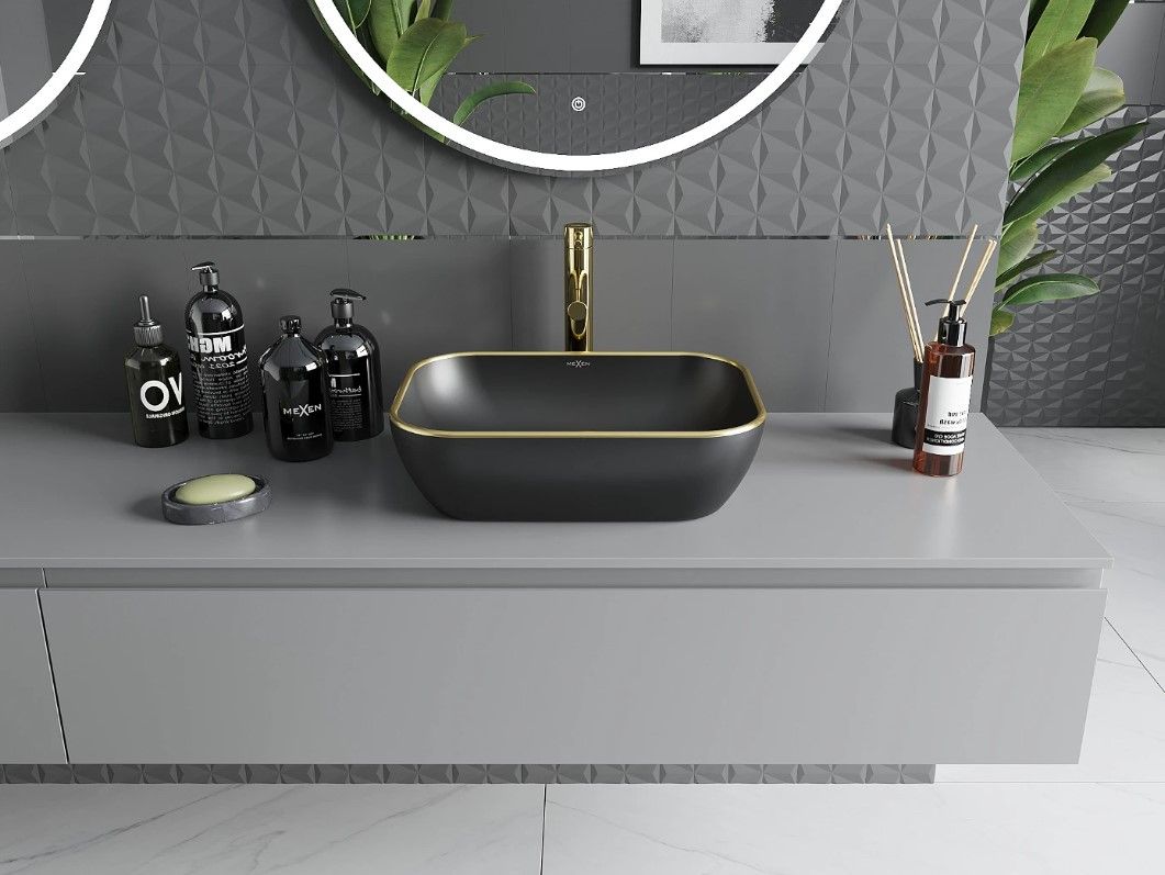 Умивальник MEXEN RITA BLACK MATT GOLD EDGE накладний | MEX-21084575