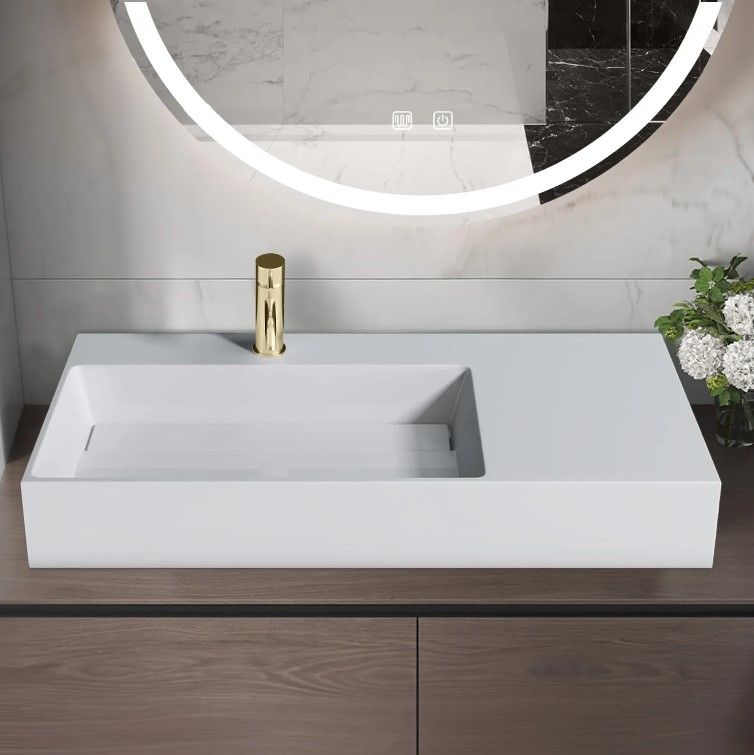 Раковина REA ARCHI виготовлена ??з високоякісного конгломерату, який дуже міцний та надійний. Раковина має чітку прямокутну форму та неймовірно насичений білий колір. Отвір зливу закривається додатковою накладкою. Раковину можна встановити на стільниці або повісити на стіну, також має отвір змішувача.