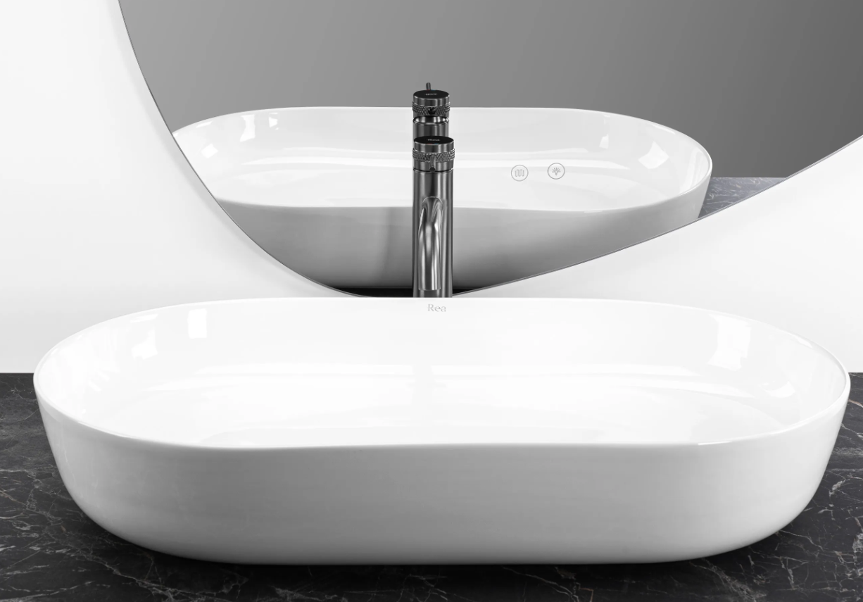 Накладні раковини серії REA CLEO - мають високий попит і доступні в різних розмірах і кольорах у глянсовому або матовому виконанні. Накладна за способом встановлення раковина має класичну овальну форму з чіткими лініями. Це дозволяє підібрати змішувач як круглої, так і квадратної форми. Модель REA CLEO 71 WHITE має білий колір, а глянсове покриття відбиває світло, створюючи враження збільшення та яскравості.