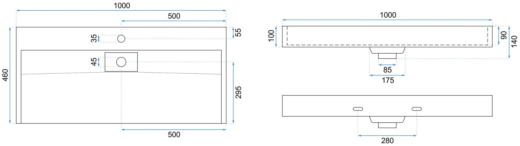 Умивальник REA GOYA 100 см накладний - підвісний білий | REA-U8903