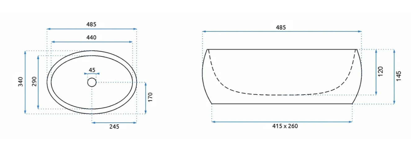Отвір під перелив:Без переливу