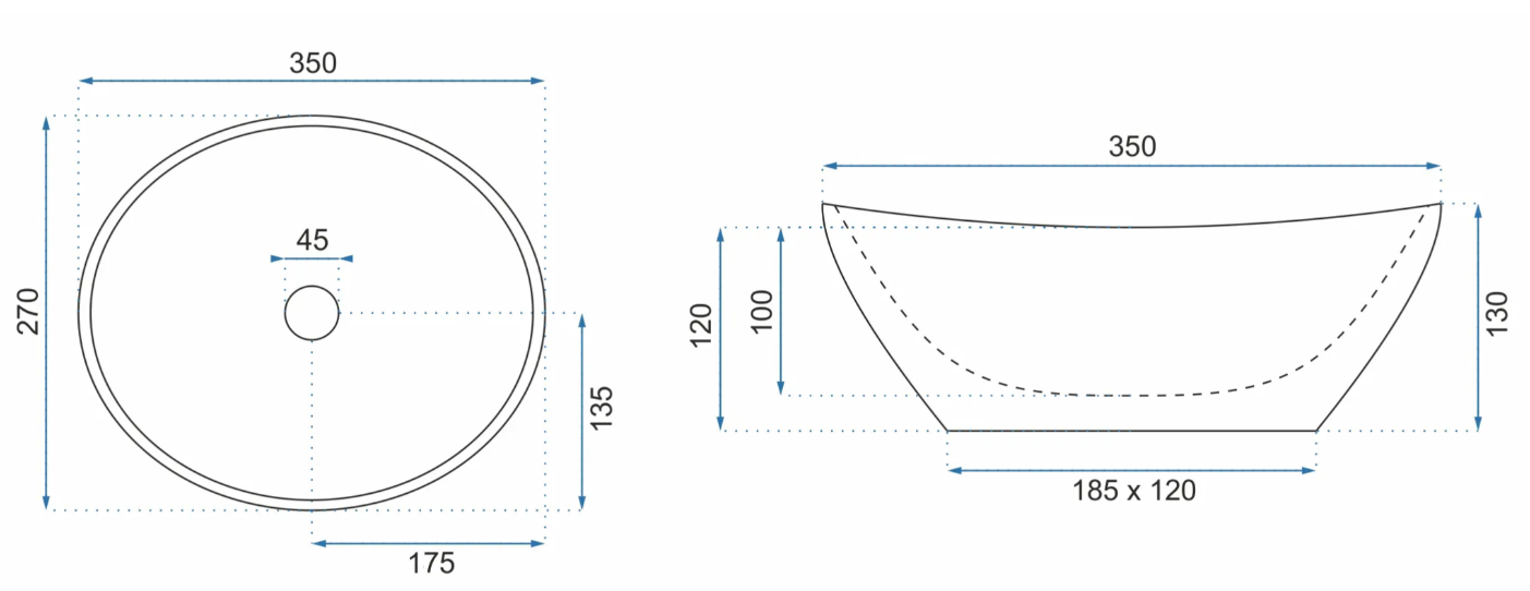 Отвір під перелив:Без переливу