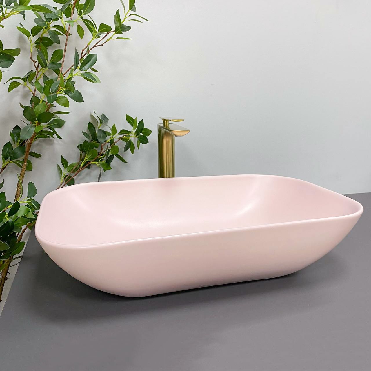 Накладні раковини серії VBI AVEZZANO мають високий попит і доступні в різних кольорах у матовому виконанні. Накладна за способом встановлення раковина має класичну прямокутну форму з чіткими лініями. Це дозволяє підібрати змішувач як круглої, так і квадратної форми. Модель VBI AVEZZANO PINK – ніжного рожевого кольору з матовим покриттям.
