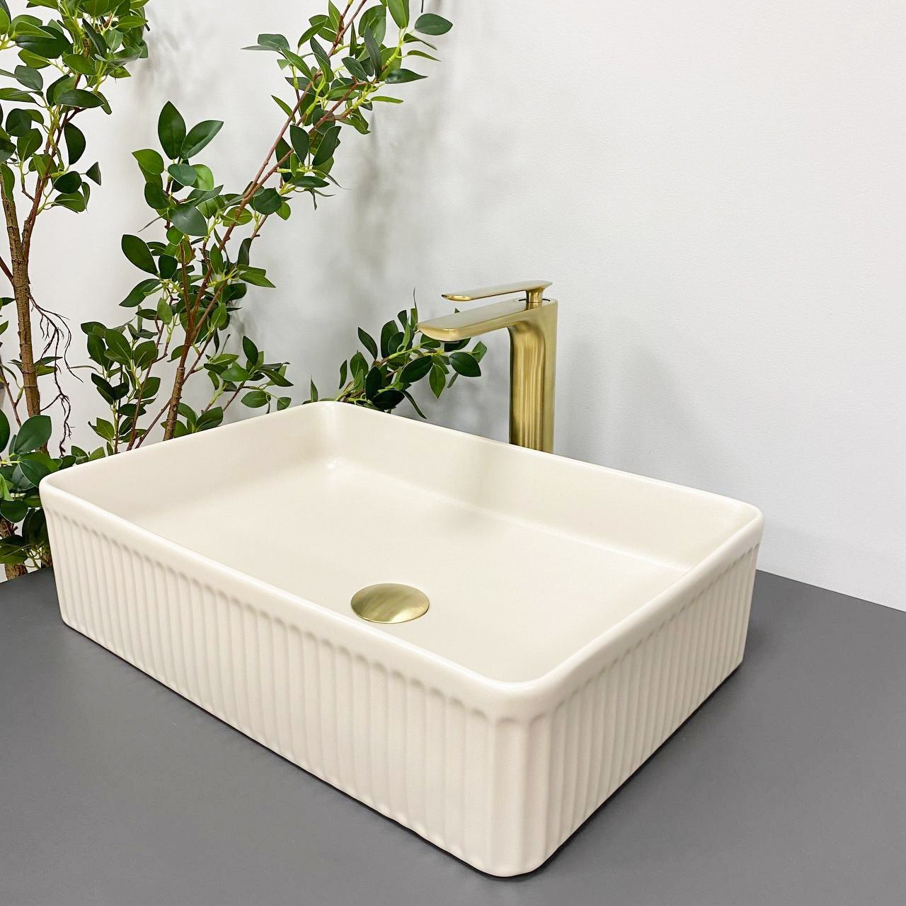 Накладні раковини серії VBI BRESCIA мають високий попит і доступні в різних кольорах у глянсовому або матовому виконанні. Раковина прямокутної форми, гладка всередині, а зовні має рифлену текстуру, що надає сучасного вигляду. Призначена для встановлення на стільницю та виготовлена ??з високоякісної кераміки. Модель VBI BRESCIA BEIGE – виконана у бежевому кольорі з матовим покриттям.