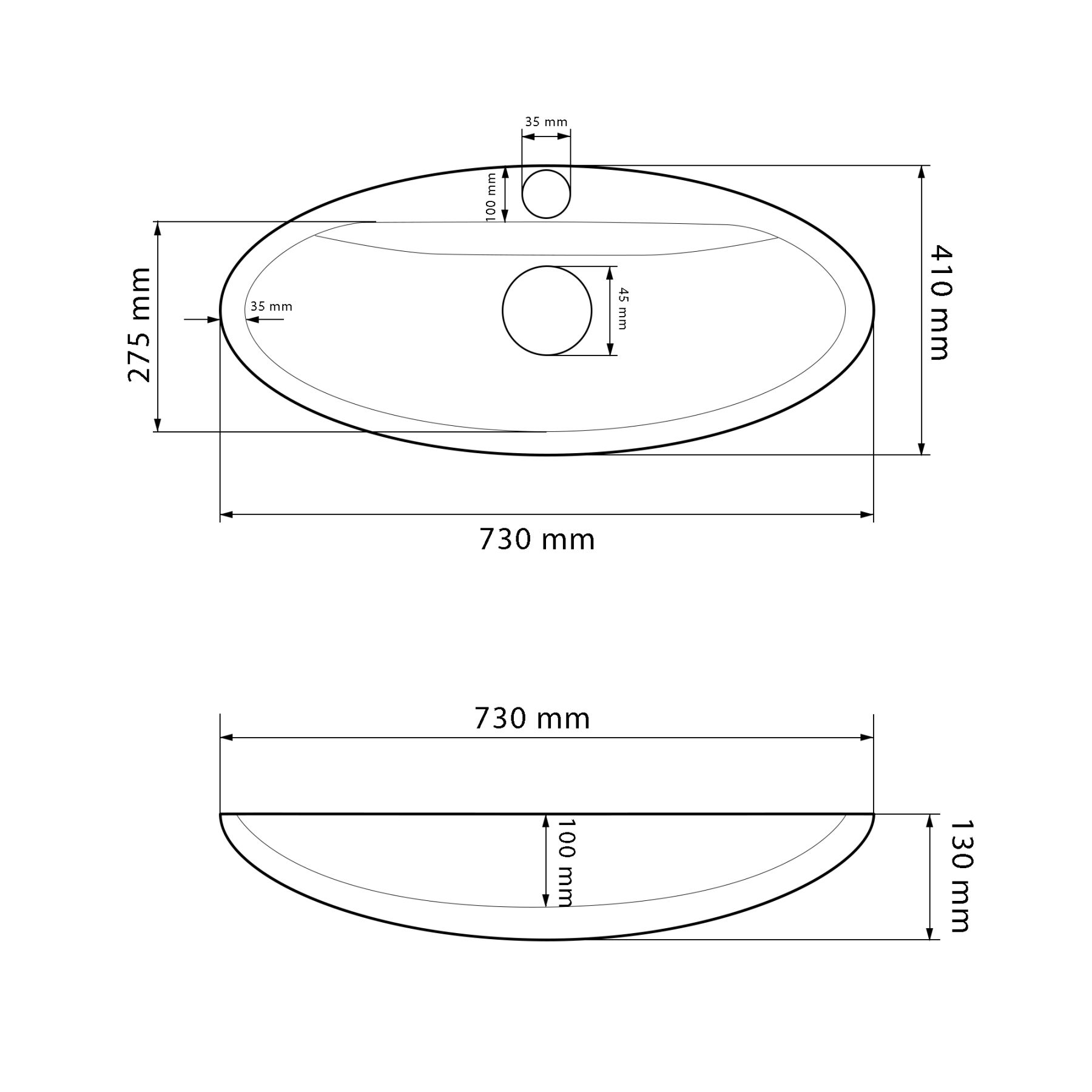 Отвір під перелив:Без переливу
