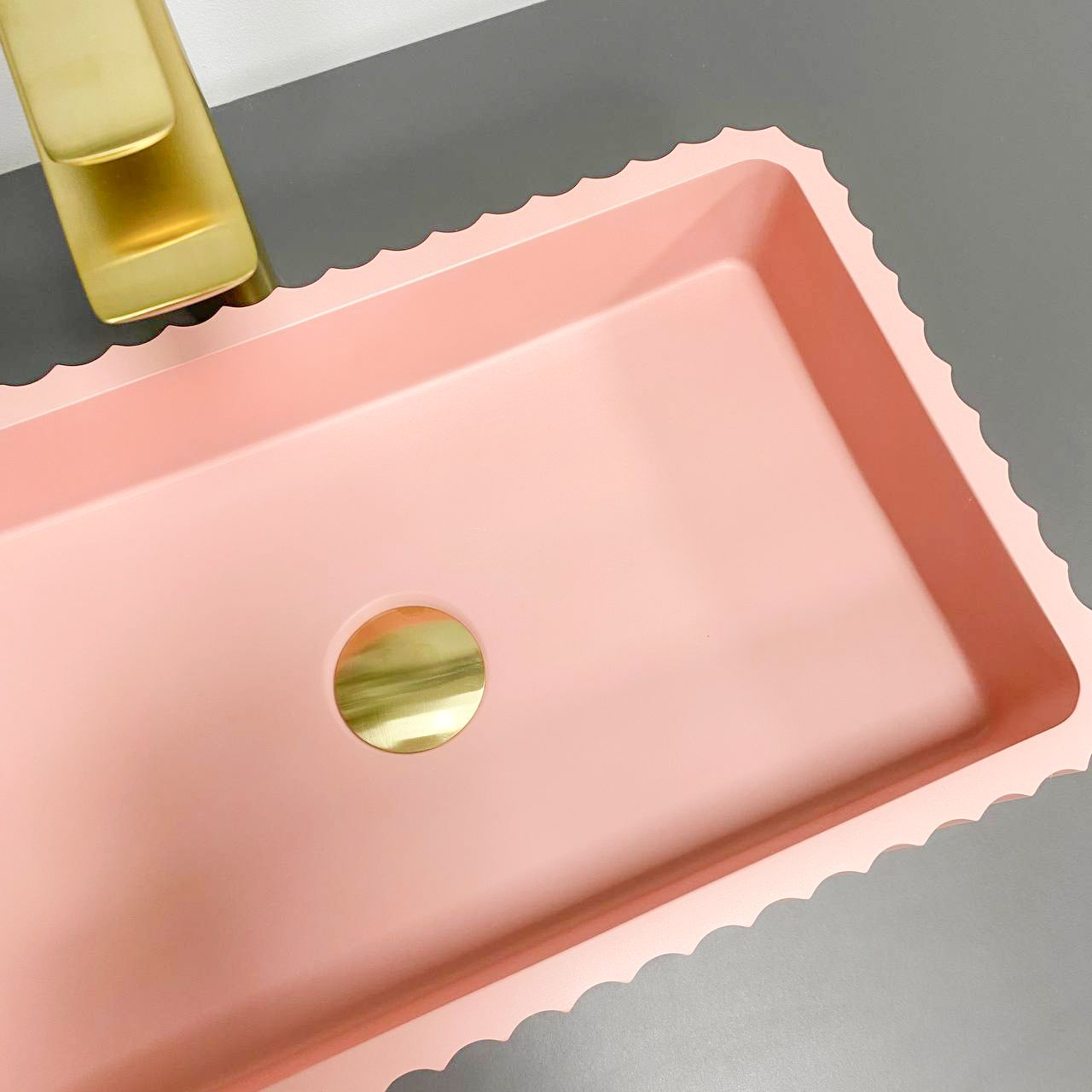 Накладні раковини з колекції VBI FLORENTIA мають сучасну прямокутну форму. Поверхня гладка всередині, а зовні рифлена текстура, що надає унікального вигляду. Універсальний дизайн дозволяє підібрати змішувач будь-якої форми. Раковина виготовлена ??з конгломерату, який відрізняється високими гігієнічними властивостями. Модель VBI FLORENTIA PINK – виконана у рожевому кольорі з матовим покриттям.