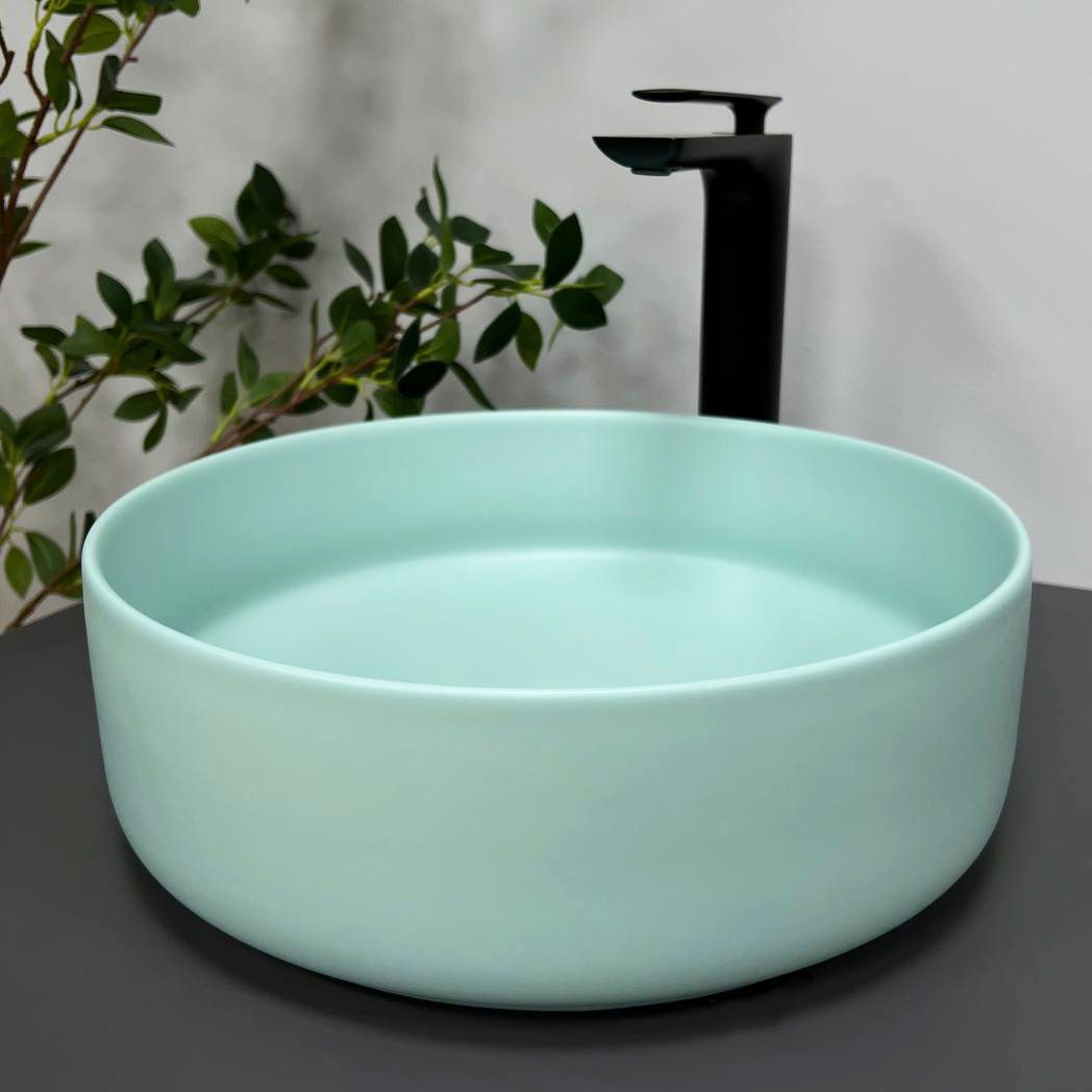 Накладні раковини VBI PRATO доступні у різних кольорах з матовим та глянсовим покриттям. Завдяки круглій формі з прямими стінками раковини стають все більш популярними і мають великий попит. Накладна раковина встановлюється на стільницю або шафу. Модель VBI PRATO TURKUS – має натуральний ментоловий ніжно-зелений колір, а матове покриття надає свого шарму.