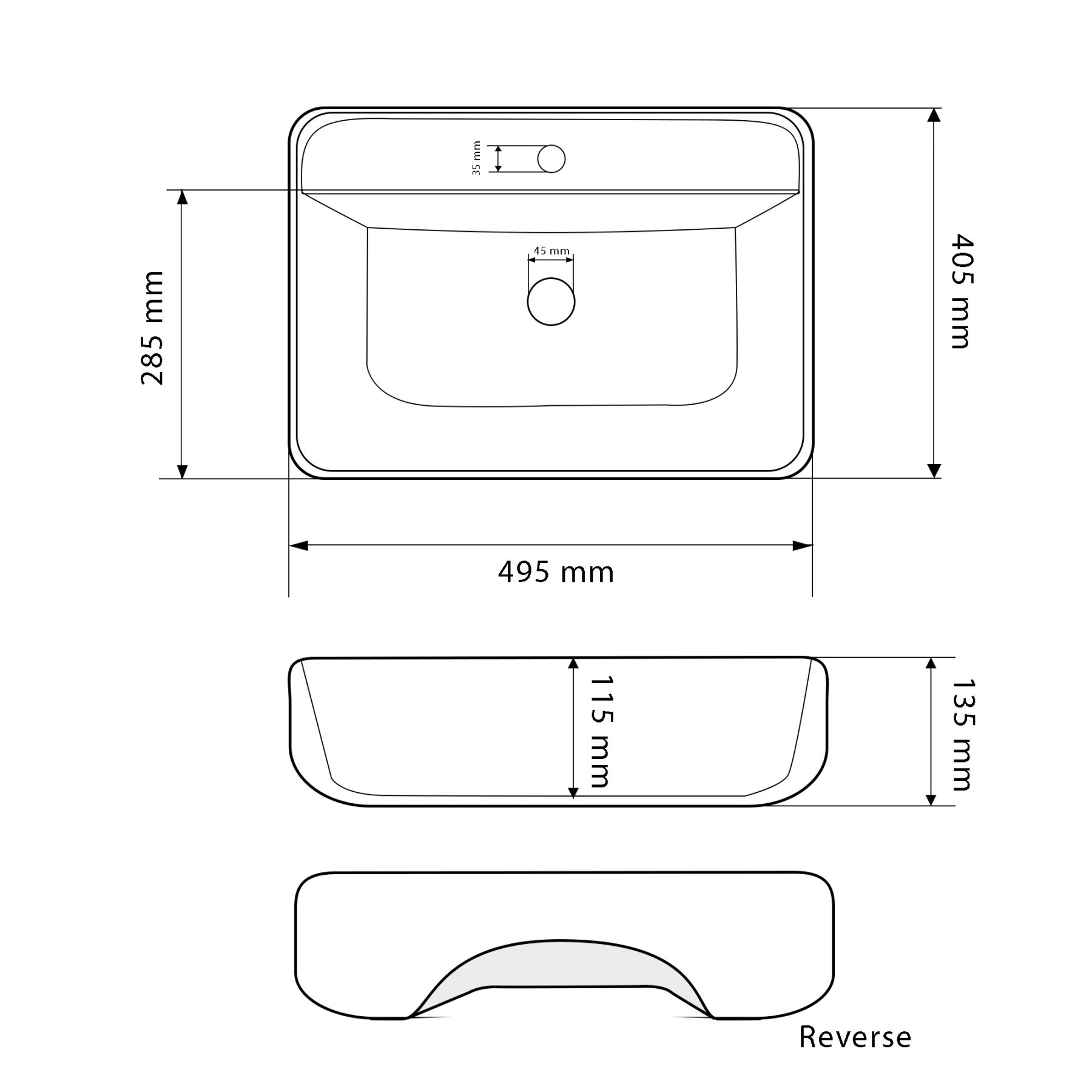 Отвір під перелив:Без переливу
