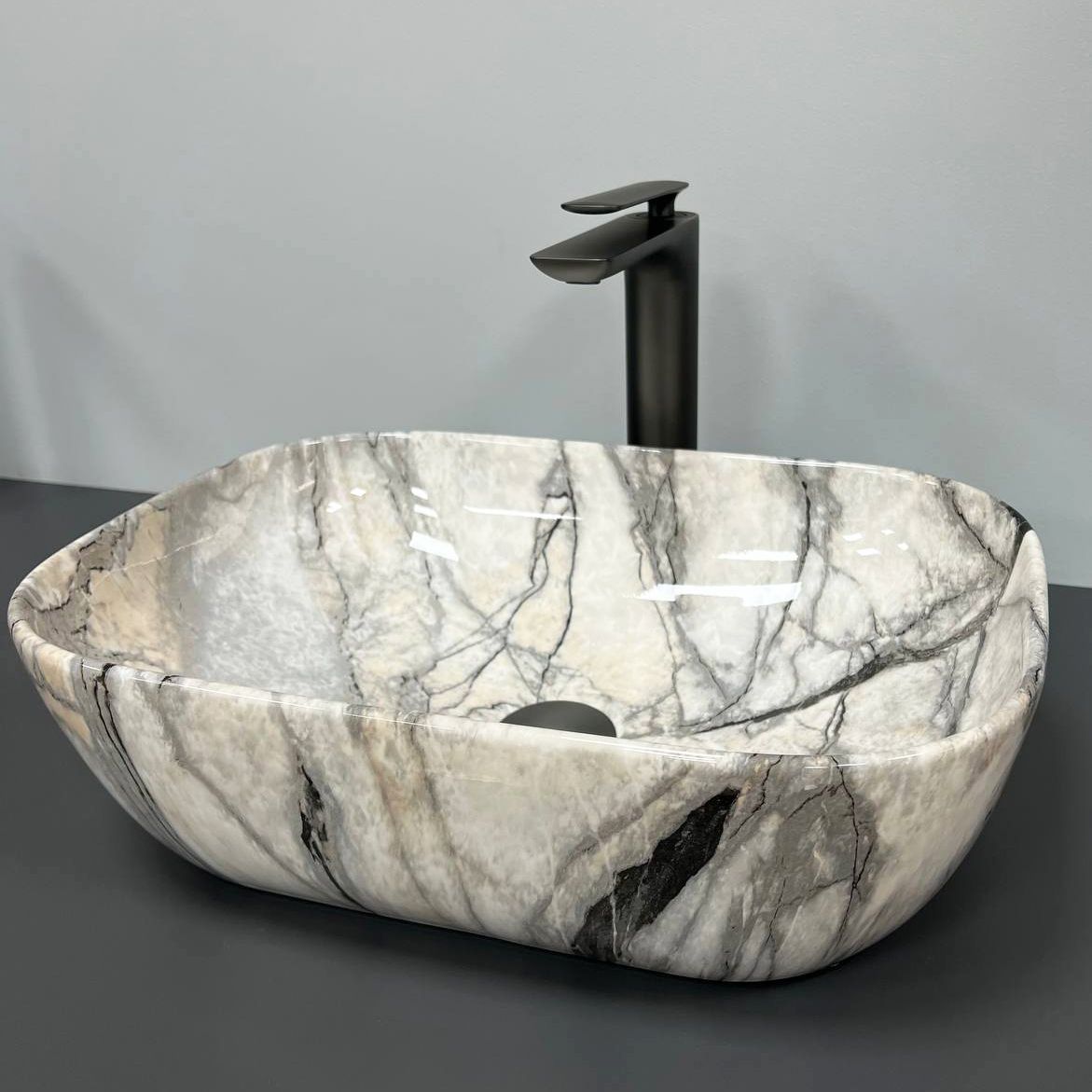 Умивальник VBI RAVENNA LIGHT GREY ONYX GLOSSY накладний | VBI-011213