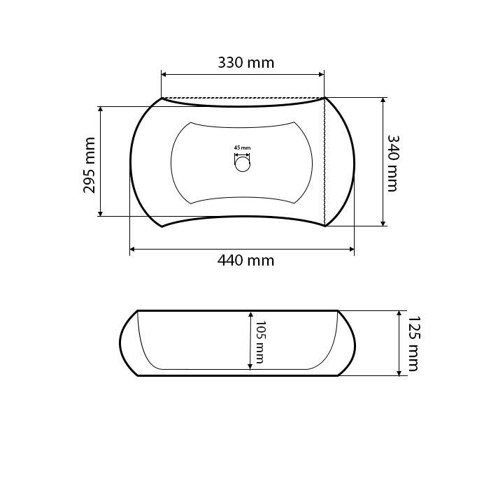 Отвір під перелив:Без переливу