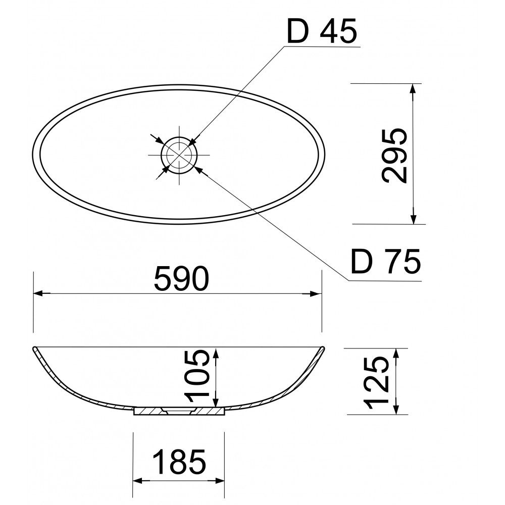 Отвір під перелив:Без переливу