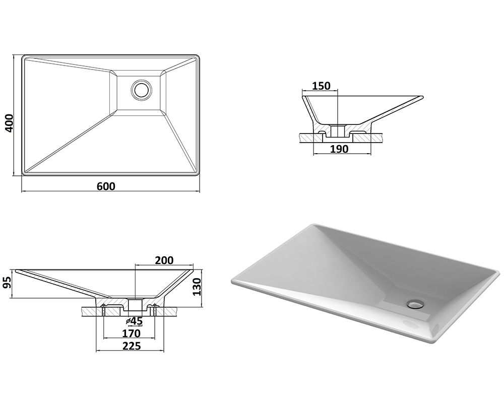Отвір під перелив:Без переливу