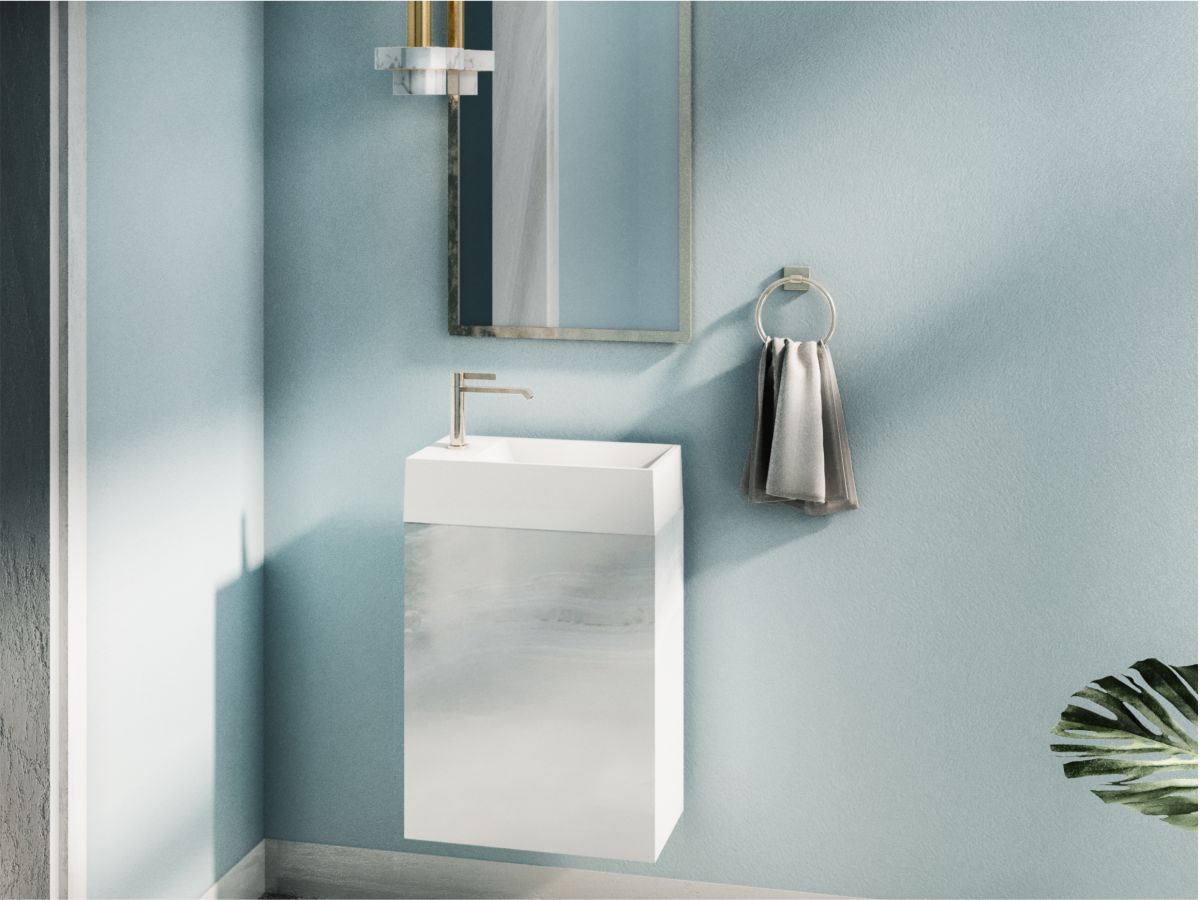 Умивальник Miraggio має накладний тип монтажу, врахуйте це перед замовленням меблів.