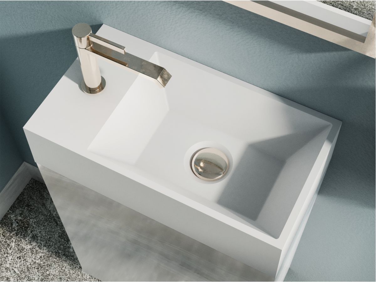 Умивальник Miraggio COPPER 400 з литого мармуру Miraggio . Литий мармур — твердий та довговічний матеріал. Основним компонентом суміші є мелена мармурова крихта, яку змішують з поліефірними смолами. Раковина покривається антибактеріальним гелем Gelcoat ISO NPG, який робить виріб міцним та білосніжним.