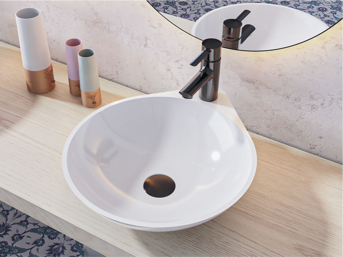 Кругла форма раковини гармонійно впишеться в будь-який дизайн сучасної ванної кімнати.
